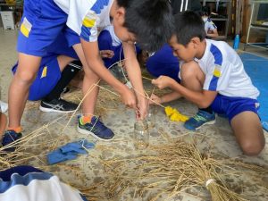 作業を進める中で、お茶碗1杯分のお米を作るには、約2株分の稲(バケツ稲2つ分)が必要だということも学び、子供たちは驚いていました。
