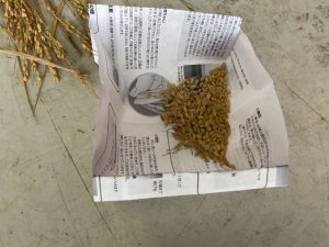 これまで育ててきたバケツ稲の脱穀を行いました。