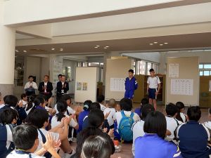中学校体験入学があり、朝日中学校へ行きました。英語と理科の授業体験、中学生の授業や学校の施設見学を通して、中学校の様子を知ることができました。さみさと小学校の友達と関わることもでき、中学校に向けて意欲を高めました。