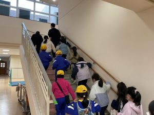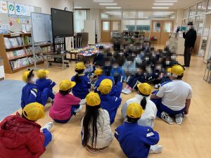 図書館の後は、さみさと小学校に行き、さみさと小学校の2年生に学校を紹介してもらいました。初対面の人や、保育園ぶりに会う人、習い事で知っている人等、程よい緊張感で仲よく活動に取り組んでいました。人数や教室の違いに両校の子供たちがお互いに驚く姿が印象的でした。今回の機会を大切に、共に成長していってほしいです。