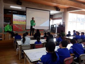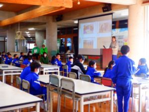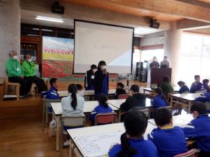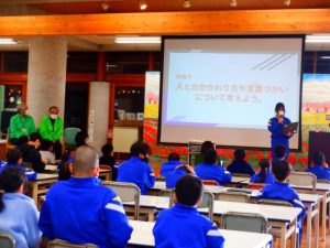 12月18日(木)5時間目、人権擁護委員のお二人をお招きし、全校で「人権集会」を行いました。