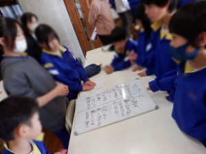 今回の集会で中心となったのは、運営委員会が学校生活の中で起こり得るトラブルを再現して作成した「事例動画」です。動画視聴後には、縦割り班で改善策を話し合いました。特に、下級生の意見を優しく引き出し、班の意見をまとめ上げた6年生の姿には、頼もしさと「人権意識の高まり」を感じました。