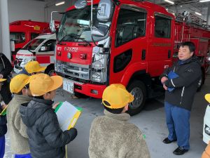 1月27日(火)、3年生は社会科の学習で朝日消防署へ見学に行ってきました。署長さんに案内していただき、普段は見ることのできない仮眠室や通信指令室など、24時間体制で街を守るための施設をじっくり見学させていただきました。通報から出動までの仕組みを分かりやすく説明していただき、子供たちは興味深く聞き入っていました。私たちの安全を守るための工夫や努力を楽しみながらもしっかりと学ぶことができました。この貴重な体験をこれからの事後学習に生かしていきたいと思います。