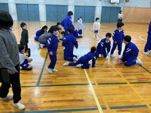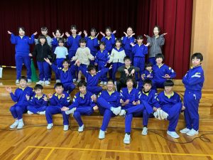ドッジビーでは、6年生が1年生にフリスビーを譲ってあげたり、投げる1年生を応援したりする場面がたくさん見られ、体育館中に歓声が響き渡りました。